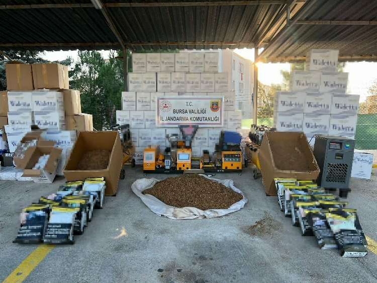 Bursa İl Jandarma Komutanlığı ekipleri, yılbaşı öncesi tütün kaçakçılarına geçit vermedi. İl genelinde yapılan operasyonda 4 ayrı adrese girildi. Operasyonda M.D.'ye (47) ait 2 adet sigara üretim makinesi, 2 adet sigara makinesine bağlı vakumlu hava kompresör makinesi, 1 adet tütün karıştırma makinesi, 1 adet hava kurutucu makine, 1 adet elektronik tartı, 115 kilogram kıyılmış tütün ve 680 bin adet boş makaron ele geçirdi. Diğer yandan S.D.'nin (21) imalathanesine yapılan operasyonda, 22 bin adet boş sigara filtresi, 120 bin adet boş makaron, 188 bin 100 adet 158,5 kilogram kıyılmış tütün ele geçirildi.