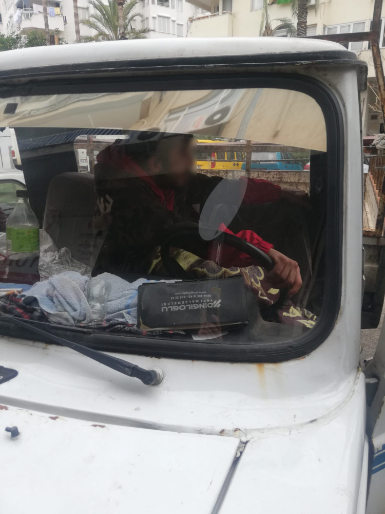 Antalya'da daha önce bir binanın deposunu yakıp babası tarafından son anda kurtarılan ve en son bir kadın kuaförünü kundaklamaya çalıştığı esnada mahalleliye ecel terleri döktüren madde bağımlısı genç, babasına ait kamyonetin içinde uyurken yakalandı.