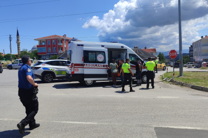 Sinop'ta direksiyon hakimiyetini kaybeden kadın motosiklet sürücüsü kayarak yere düştü.