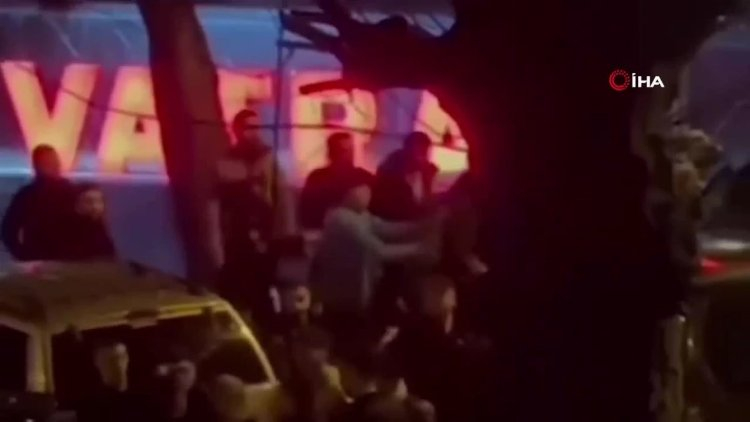 Kafenin dışında birbirlerine acımasızca saldıran şahıslardan bazıları araçların üzerinden atlarken polis ekipleri kavgayı ayırmakta zorluk yaşadı. Dakikalarca süren kavga bir vatandaşın cep telefonu kamerasına yansıdı.