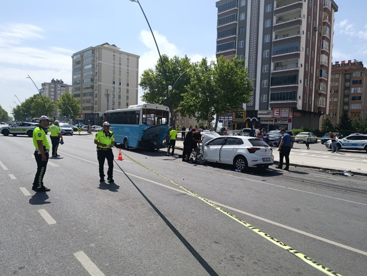Kahramanmaraş'ta meydana gelen trafik kazasında Volkswagen marka otomobil, seyir halindeyken Otokar marka halk otobüsüne arkadan çarptı.