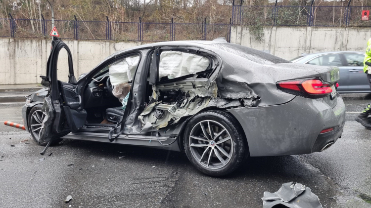 Sarıyer’de yağmur nedeniyle direksiyon hakimiyetini kaybeden kamyon sürücüsü, refüjü aşarak yolun karşısından gelen lüks otomobile çarptı.