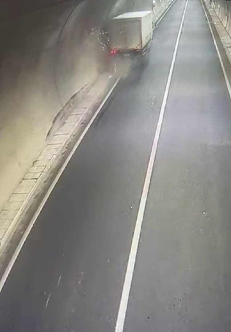 Kamyon tünel duvarına çarptı: O anlar güvenlik kameraların yansıdı