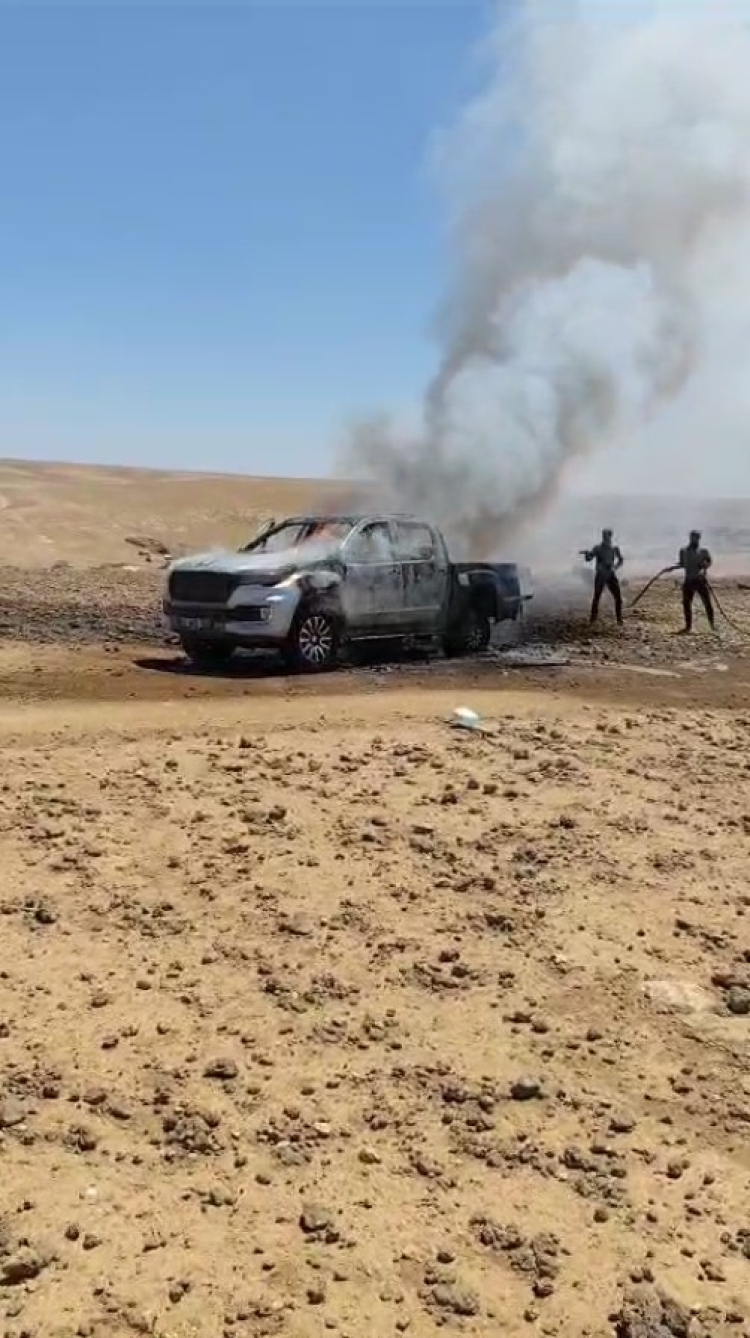 Edinilen bilgiye göre olay, Ceylanpınar ilçesine bağlı kırsal Karataş Mahallesi'nde meydana geldi. Tarım İşletmeleri Genel Müdürlüğü'ne (TİGEM) bağlı Ceylanpınar Tarım İşletmesi arazisinde, güvenlik görevlilerinin kullandığı kamyonet seyir halindeyken bir anda alev aldı.