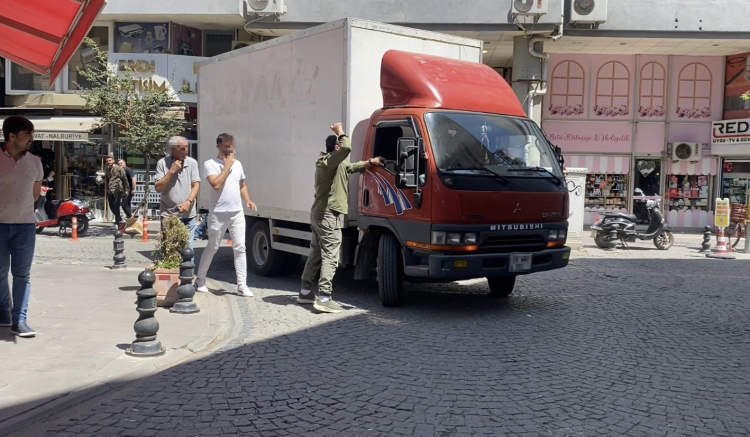 Olayın büyümesinden rahatsız olan esnaf tarafları güçlükle ayırdı. Yolcu, indiği taksiye tekrar binerek bölgeden uzaklaştı. Kamyon sürücüsü ise ani manevra yaparken bir kıraathanenin önündeki bisiklete çarptı. Yaşanan panik dolu anlar cep telefonu kamerası ile görüntülendi.