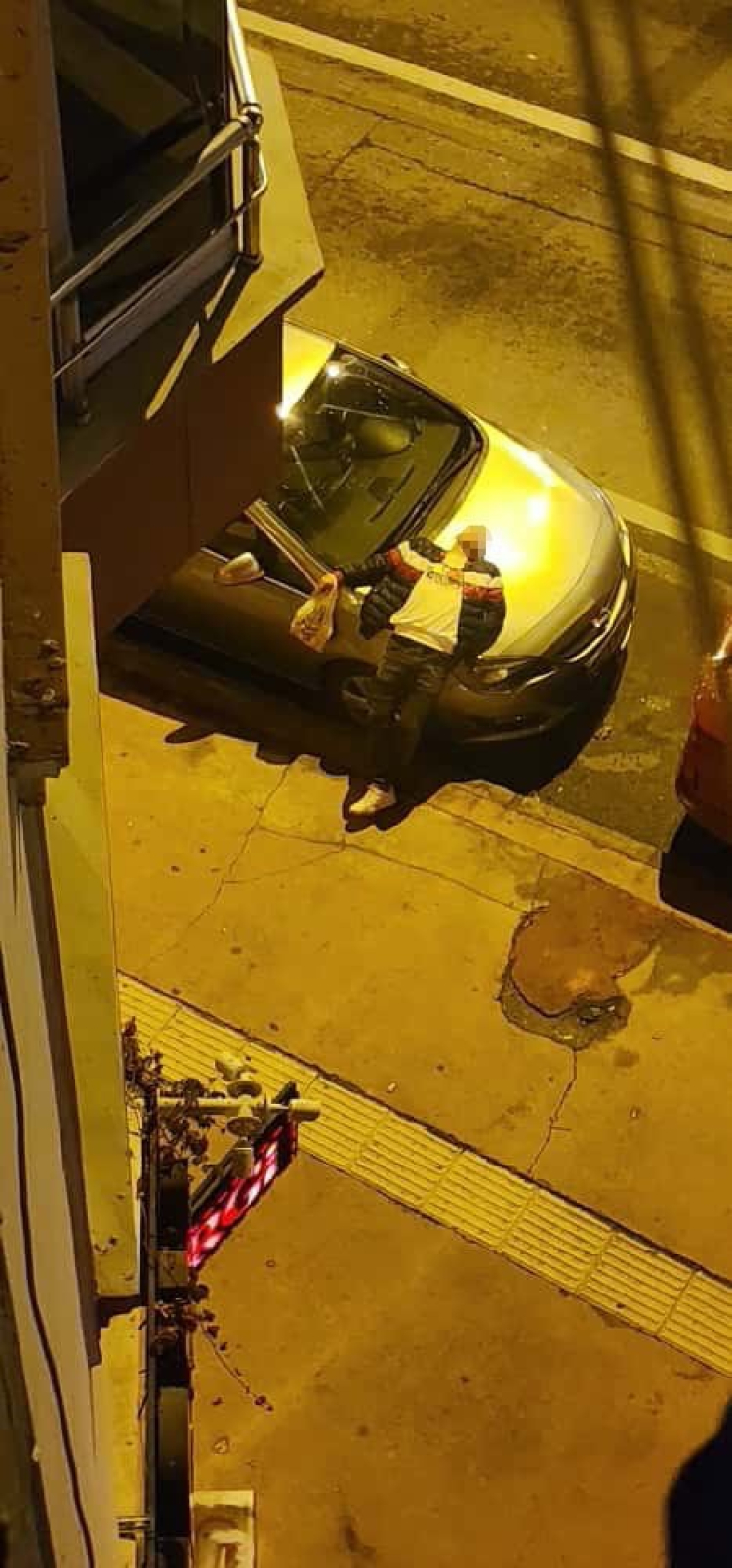 Aynı şahsın yakalanmadan bir saat önce de bir aracın üzerine yatarak uyurken fotoğrafının çekildiği ortaya çıktı.