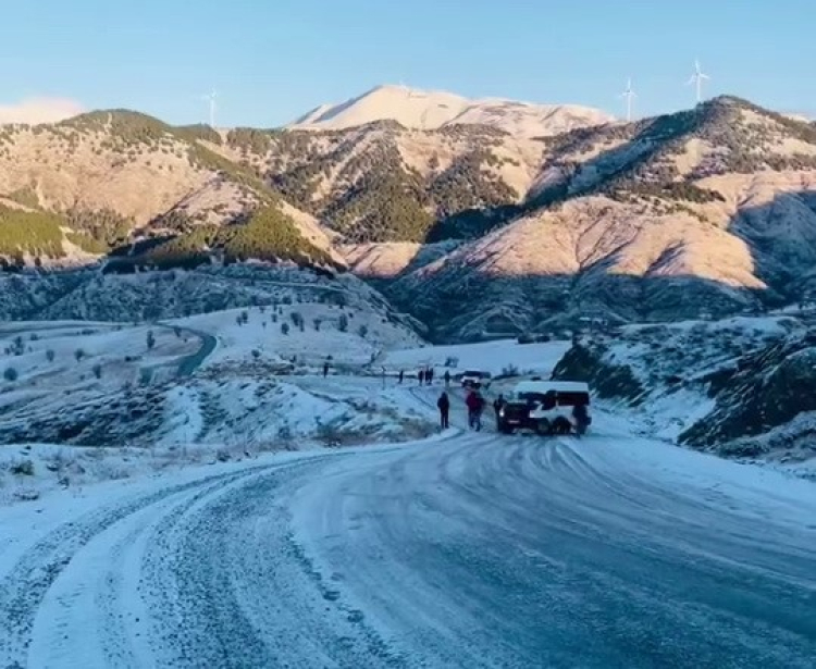 Adıyaman Sincik ilçesinde etkili olan kar yağışı sonrası yollar buz pistine döndü.