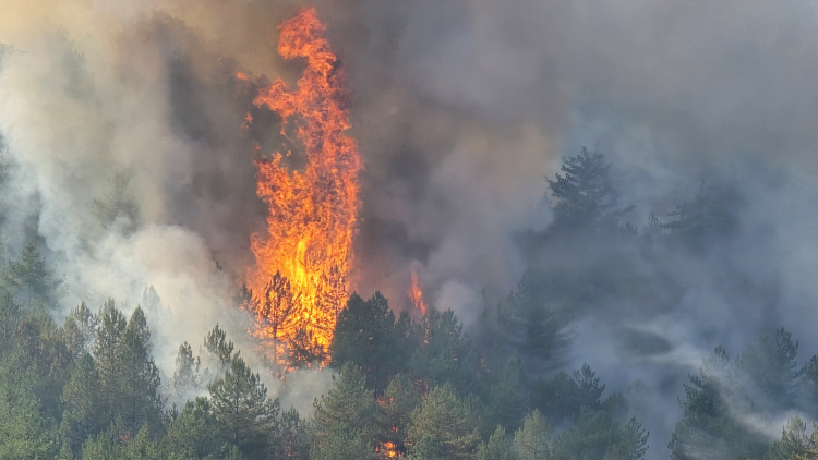 İtfaiye, arazöz, su tankeri, greyder ve dozerlerden oluşan 75 aracın müdahale ettiği yangın rüzgarın etkisiyle zaman zaman zor anlar yaşatıyor.