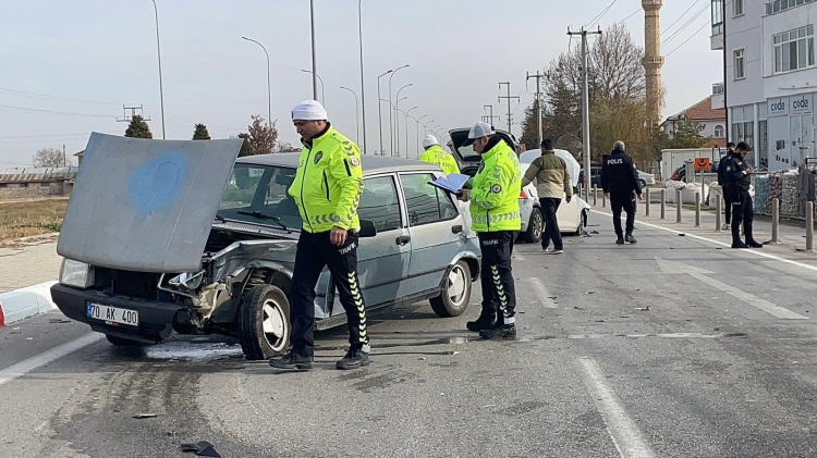 Karaman'da otomobillerin kavşakta çarpışması sonucu meydana gelen kazada 3 kişi yaralandı.