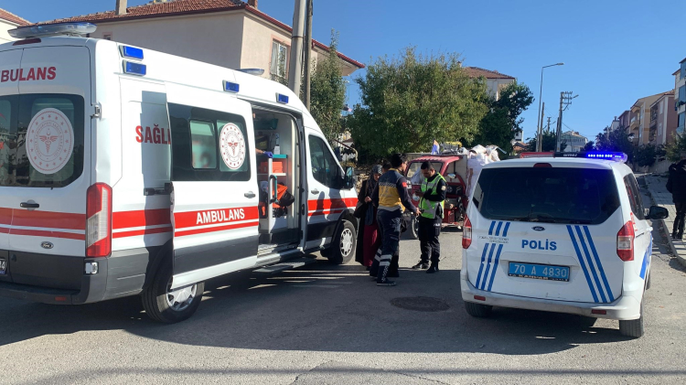 Çarpışmanın etkisiyle H.Ç. idaresindeki elektrikli motosiklette yolcu olarak bulunan M.T. isimli kadın yaralandı. İhbar üzerine olay yerine sağlık ve polis ekibi sevk edildi. Kazada yaralanan M.T. ambulansla Karaman Eğitim ve Araştırma Hastanesi’ne kaldırılarak tedavi altına alındı.