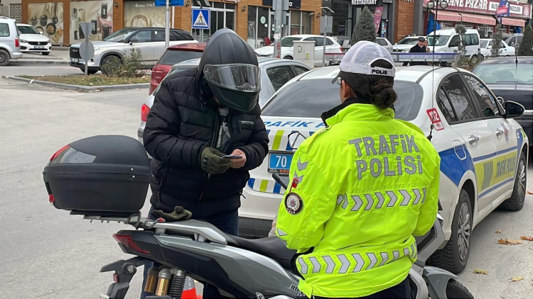 İl Emniyet Müdürlüğü Trafik Tescil ve Denetleme Şube Müdürlüğü ekipleri, trafik kazalarını azaltmak ve trafik güvenliğini sağlamak amacıyla denetimlerini aralıksız sürdürüyor. Kent merkezinde Kirişçi Mahallesi ve Atatürk Bulvarı üzerindeki kavşakta denetim yapan trafik ekipleri, motosikletleri tek tek durdurdu. Yapılan denetimler sonucunda, ehliyetsiz motosiklet kullandığı tespit edilen sürücülere ilgili kanun maddelerince idari para cezası uygulandı ve motosikletler çekiciyle otoparka götürüldü.