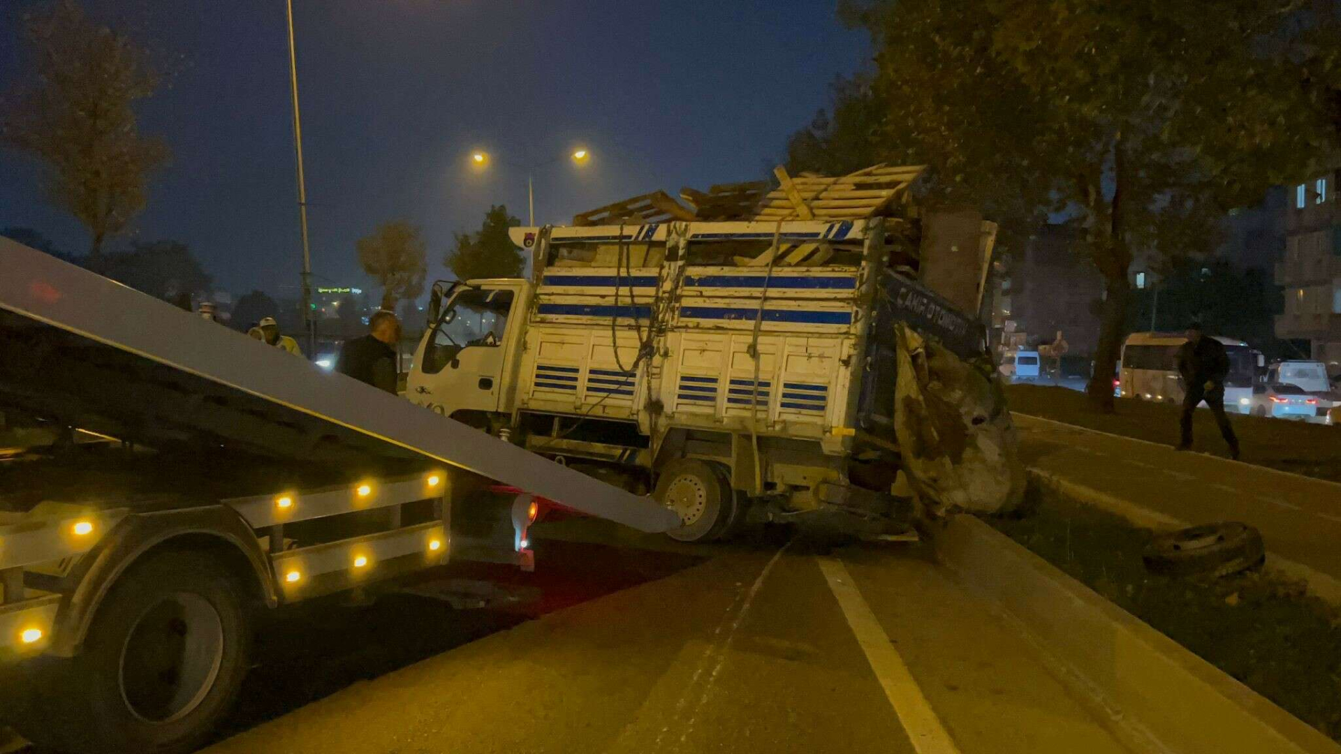 Polis ekiplerinin önlem almasıyla kamyonet çekici yardımıyla yoldan çekildi.