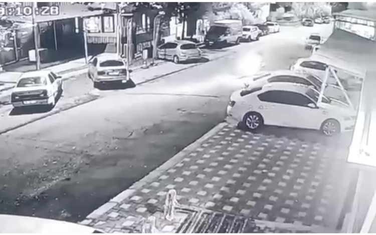 Cadde ortasında ilerleyen bir motosiklet sürücüsü, aniden dengesini kaybederek önce kaldırıma çarptı, ardından devrildi. Kazada motosikletin altında kalan sürücünün ayağı sıkıştı. Kaza anı, çevredeki bir güvenlik kamerası tarafından saniye saniye kaydedildi.