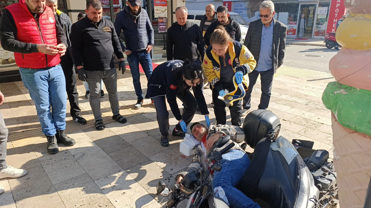 Güvenlik kamerasına saniye saniyesine yansıyan kazada başını reklam panosuna çarpan motosiklet sürücüsü başındaki kask sayesinde kazayı yaralı olarak atlattı. Yaralı motosiklet sürücüsünün yardımına ilk olarak çevredeki vatandaşlar koşarken, bir vatandaşın elindeki havluyla yarasına müdahalede bulunduğu görüldü. Yaralı motosiklet sürücüsü 112 sağlık ekibinin olay yerindeki müdahalesinin ardından ambulansla hastaneye kaldırıldı.