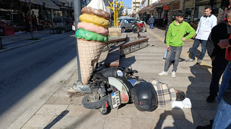 Kaza, Manavgat’ın Aşağı Pazarcı Mahallesi Atatürk Caddesi üzerinde meydana geldi. Edinilen bilgiye göre, İbrahim Sözen Caddesi istikametine seyir halindeki Abdullah A.’nın kullandığı 07 AAR 305 plakalı motosiklet 1017 sokak kavşağına geldiğinde, önünde yavaşlayan otomobillerin sağından geçmek istedi. Direksiyon hakimiyetini kaybederek kaldırıma çıkan motosiklet sürücüsü kaldırımda bulunan dondurma külahı şeklindeki reklam panosuna çarptı.