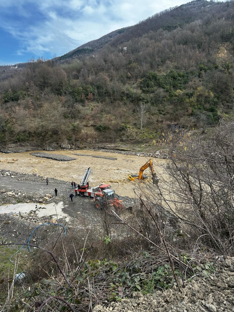 Olay, Bozkurt ilçesi Bayramgazi köyü mevkiinde meydana geldi. Edinilen bilgiye göre, dere yatağında çalışan özel bir firmaya ait ekskavatör, çayın debisi yükselince suda mahsur kaldı. İş makinesinin operatörü ise aracın üzerine çıkarak kurtarılmayı bekledi.
