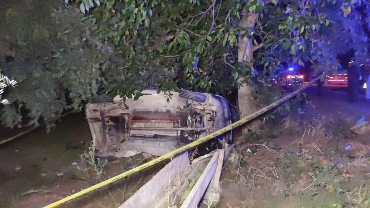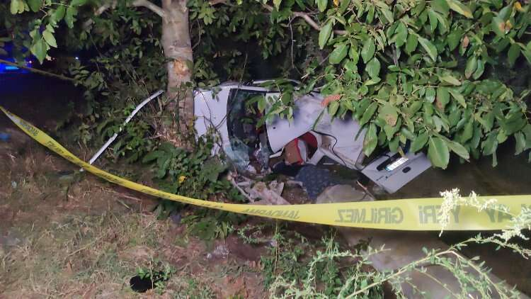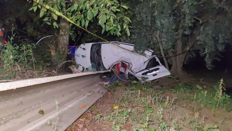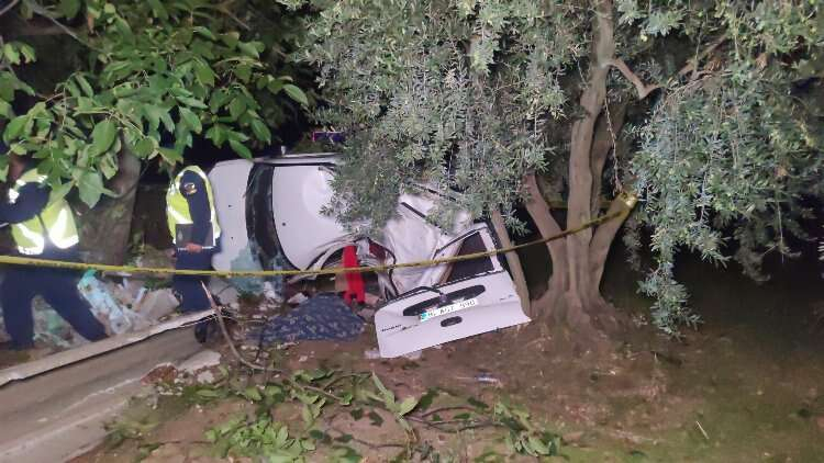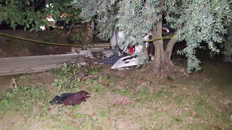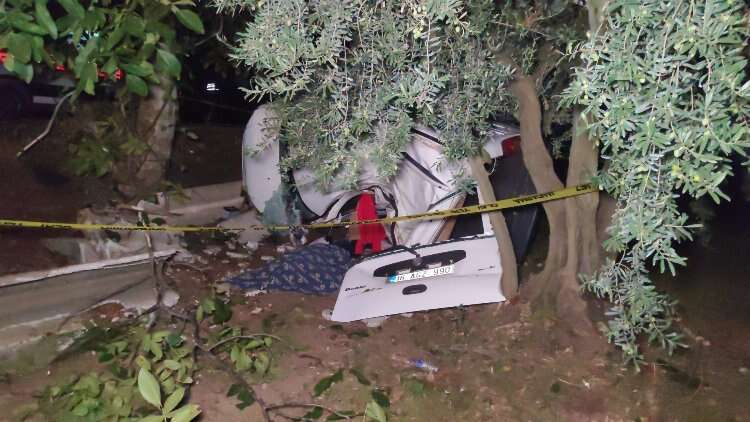 Ağaca çarpan araçta bulunan 2 kişi hayatını kaybetti.
