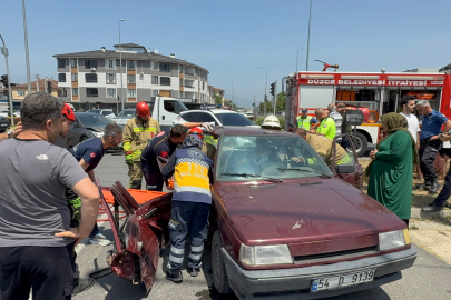 Düzce'de kavşakta iki otomobilin çarpıştığı kazada 3 kişi yaralandı.