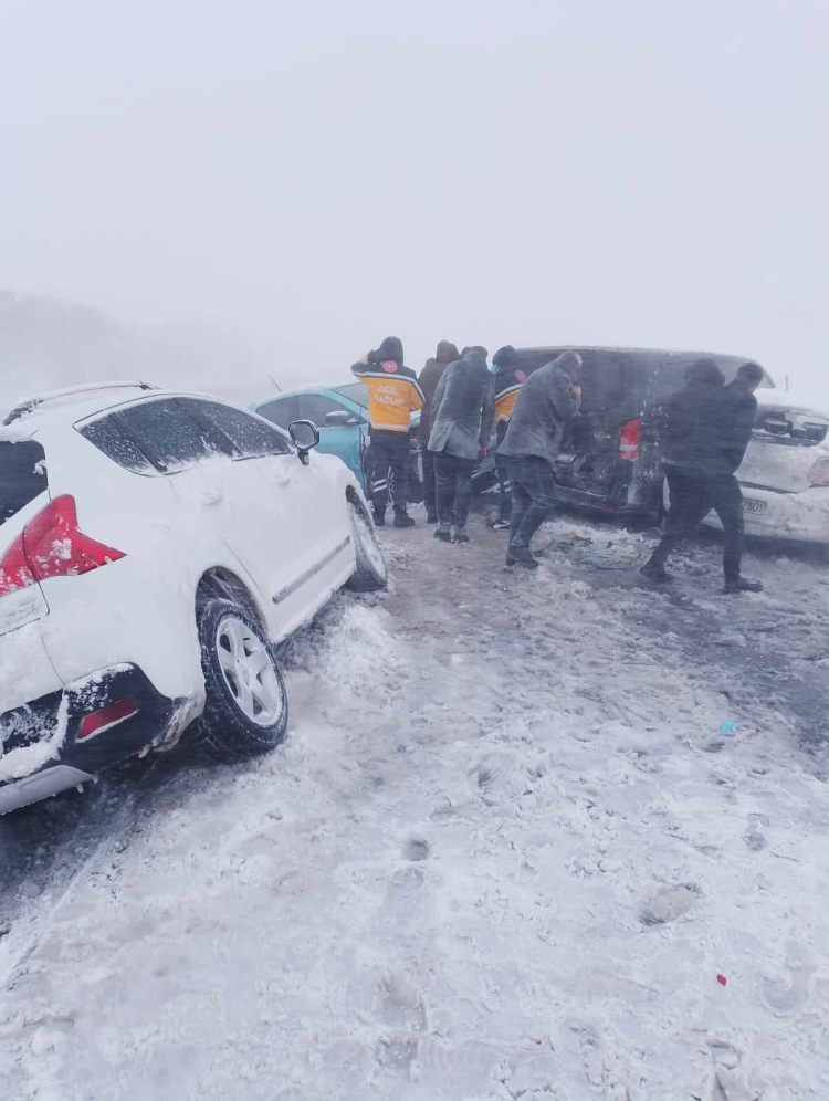 Kayan araçların karıştığı kazada 5 kişi yaralanarak tedavi altına alındı. Kırşehir - Mucur karayolunun 10. kilometresinde meydana gelen kazalara yoğun tipi ve kaygan zemin neden oldu.
