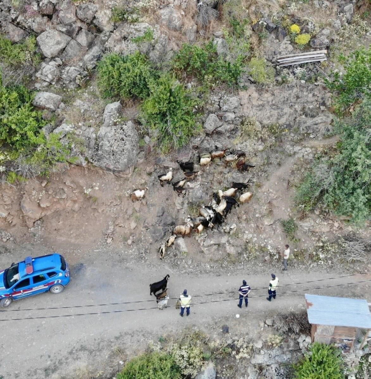 Kaybolan 30 küçükbaş hayvan, jandarmanın dron destekli arama çalışmasıyla bulundu