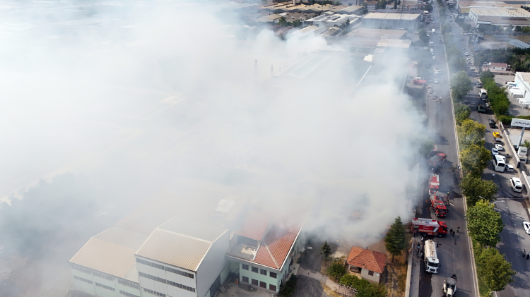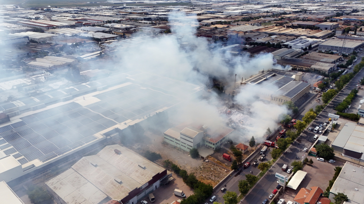 Öte yandan, dumanların yükseldiği yangın ve ekipleri yangını söndürme çalışmaları da havadan görüntülendi. Ekiplerin çalışması sürüyor.