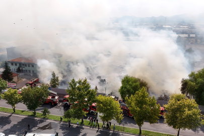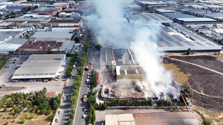 Kayseri'nin Melikgazi ilçesinde kağıt fabrikasında çıkan yangın havadan görüntülendi.