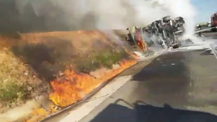 Kaza sonrası yakıt tankeri alev topuna döndü