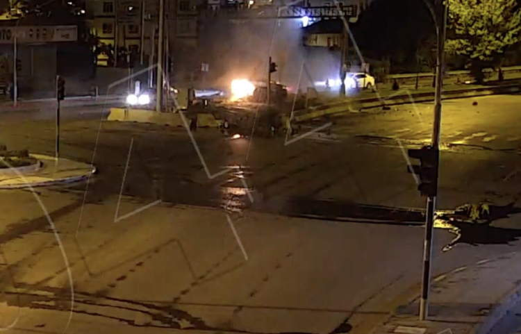 Öte yandan, kameraya yansıyan görüntülerde, bir otomobilin sürücüsünün direksiyon hakimiyetini kaybetmesi neticesinde refüjdeki beton bariyerlere ve elektrik direğine çarptığı görülüyor. Çarpmanın etkisiyle otomobilin motor kısmı alevlere teslim oluyor.