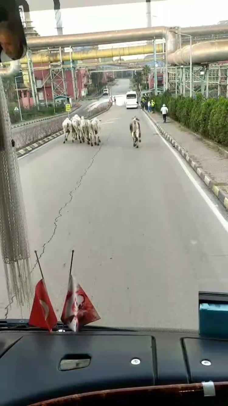 Hatay'da 2 kişinin can verdiği kazada tırdan kaçan anguslar şehir turuna çıktı.