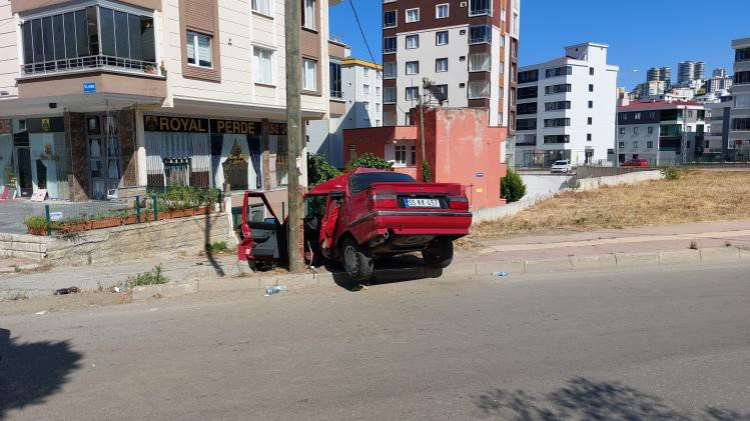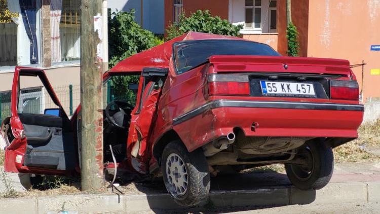Samsun'da yoldan çıkarak ağaç direğe çarpıp parçalanan otomobilin sürücüsü, kazayı yara almadan atlattı.