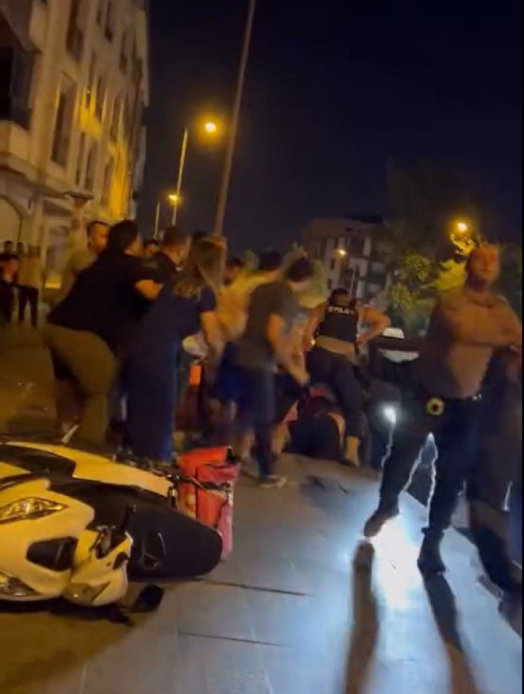 Olayın ardından sürücüler arasında tartışma çıkarken, taraflar yakınlarını çağırdı. Kısa sürede olay yerine sürücülerin yakınlarının da gelmesiyle sözlü tartışma sopa ve yumruklu kavgaya dönüştü. Çevredeki vatandaşların ihbarı üzerine bekçi ve polis ekipleri kaza yerine sevk edildi. Olaya karışan bazı kişiler bekçiler tarafından gözaltına alınırken, kavga güçlükle son buldu. Yaşanan o anlar ise anbean çevredeki vatandaşların cep telefonu kamerasına yansıdı.