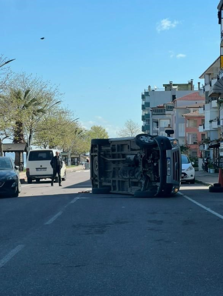 Kaza 12.00 sıralarında Değirmendere sahil yolunda meydana geldi. 34 MHC 601 plakalı otomobili ile seyir halinde olan ismi öğrenilemeyen sürücü, önüne çıkan başka bir otomobile çarparak yan yattı.