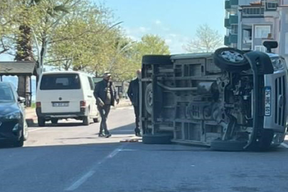 Kocaeli'nin Gölcük ilçesinde başka bir otomobile çarpan araç yan yattı.