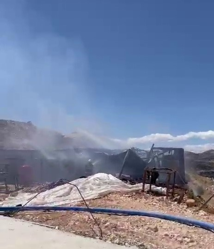 Adıyaman’da, inşaat alanında bulunan bir konteyner alev alarak cayır cayır yandı.
