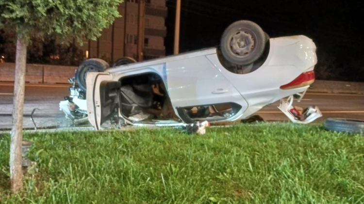 Kocaeli'nin Karamürsel ilçesinde D-130 kara yolunda kontrolden çıkan otomobilin bariyerlere çarparak takla atması sonucu 3 kişi yaralandı.