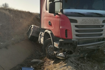 Isparta'nın Şarkikaraağaç ilçesinde kontrolden çıkarak yol kenarındaki kanala düşen tırın sürücüsü yaralandı.