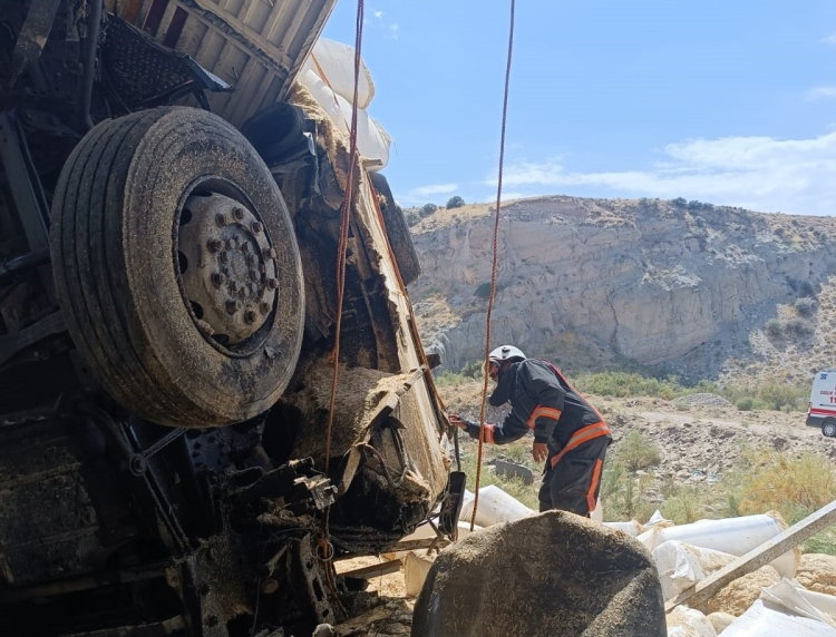 Kontrolden çıkan tır uçuruma yuvarlandı