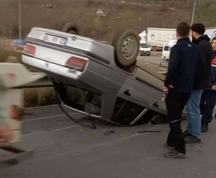 Savrulan araç takla atarak ters durdu. Kaza sonucu sürücü yaralandı.