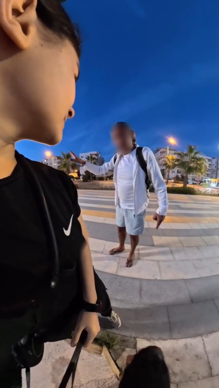 Sosyal medyada paylaşılan ve Alanya ilçesinde olduğu belirtilen olayda, bankta köpeğiyle birlikte oturan yerleşik yabancı bir kızın yanına, kimliği henüz bilinmeyen ve alkollü olduğu iddia bir şahıs geldi. Önce köpeği çağıran şahıs, sahibinin İngilizce ısırır uyarısına aldırış etmedi, ardından ikilinin arasında sözlü münakaşa yaşandı.
