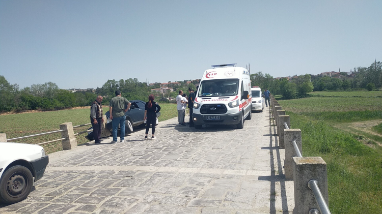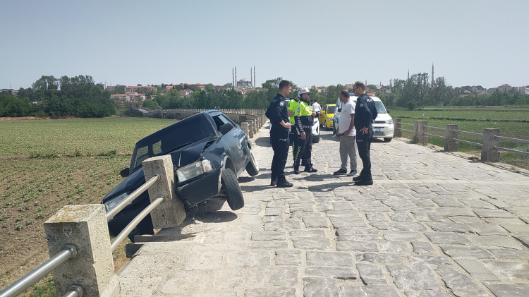 Edirne'nin Saraçhane Köprüsü'nde seyreden Tugay Kısaç'ın kullandığı Fiat Tofaş marka 22 AAP 021 plakalı otomobil köprünün bariyerlerine çarptı. Otomobilin tarlaya uçmasına ramak kala, bariyer korkulukları aracı tuttu.