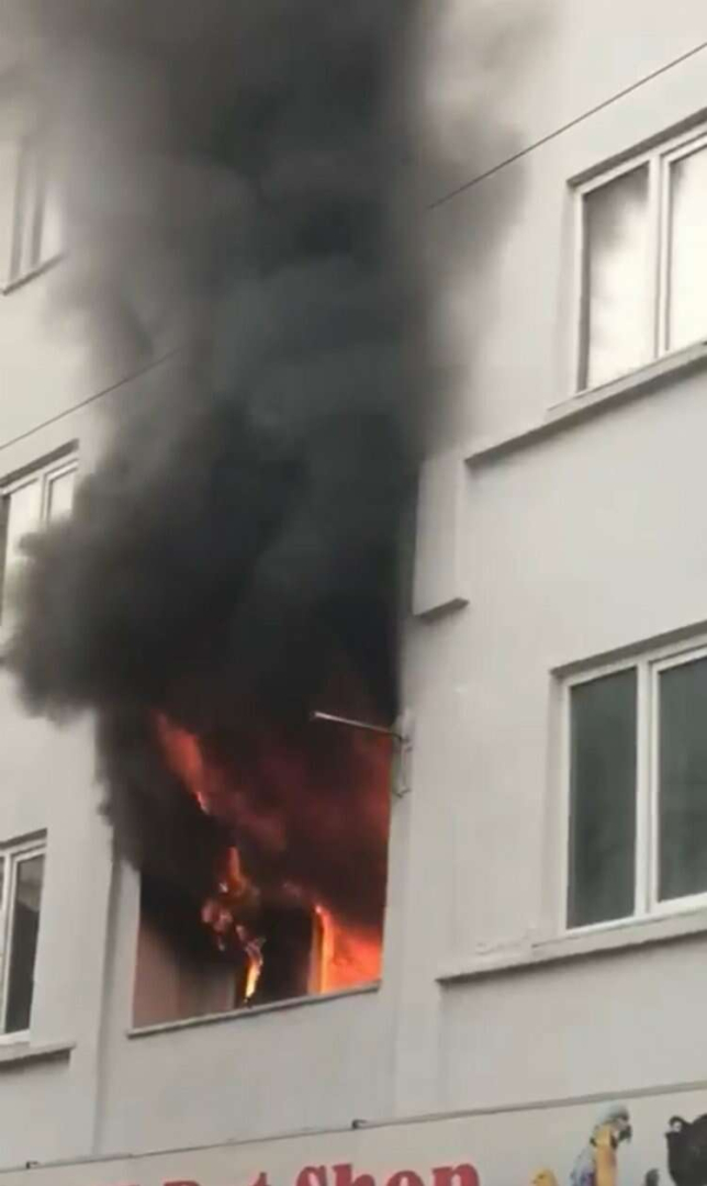 Alev alev yanan daire mahalle sakinlerine korku dolu anlar yaşatırken, yangın itfaiye ekiplerinin müdahalesiyle binayı sarmadan söndürüldü.