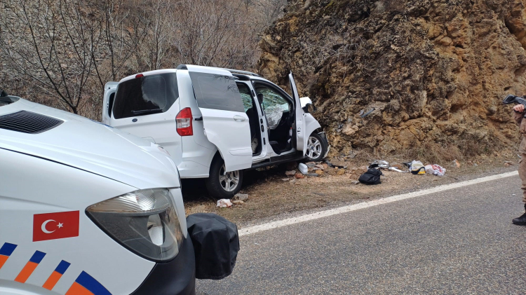 Tunceli-Erzincan karayolunda sürücüsünün direksiyon hakimiyetini kaybettiği otomobil kayaya çarptı.