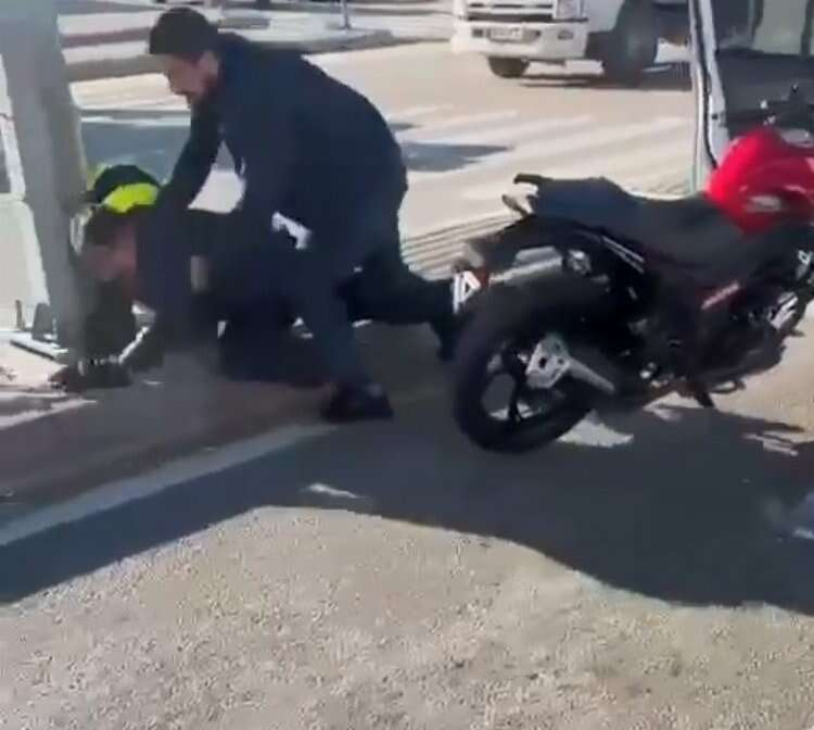 Korkunç olay: Motosiklet sürücüsünü kaskıyla dövdü