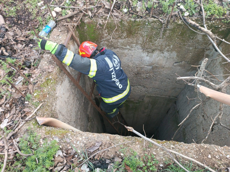 Denizli’nin Çivril İlçesi Bulgurlar Mahallesinde koyun sürüsünü otlatmaya çıkartan çoban koyunlarından birinin üzeri açık olan kuyuya düştüğünü gördü. 112 Acil Çağrı Merkezine arayarak yardım istedi. Bölgeye gelen itfaiye ekipleri gerekli çalışmaların ardından 5 metrelik kuyuya indi.