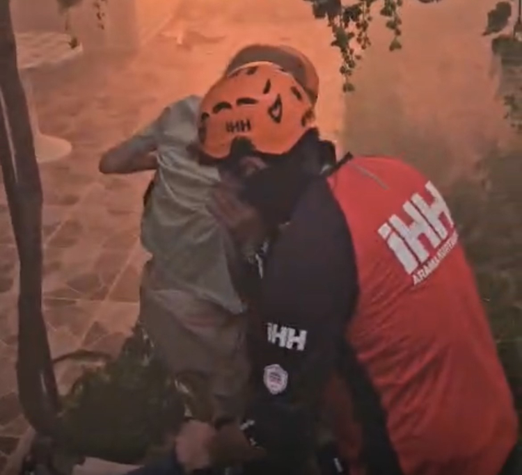 İzmir'in Menderes ilçesinde başlayan ve Seferihisar‘da çok sayıda evi küle çeviren orman yangınında duygu dolu kareler ortaya çıktı. Evinden çıkamayan tekerlekli sandalyedeki yaşlı adam ve yine evlerinde mahsur kalan bir vatandaş ile kedisi ekipler tarafından kurtarıldı.