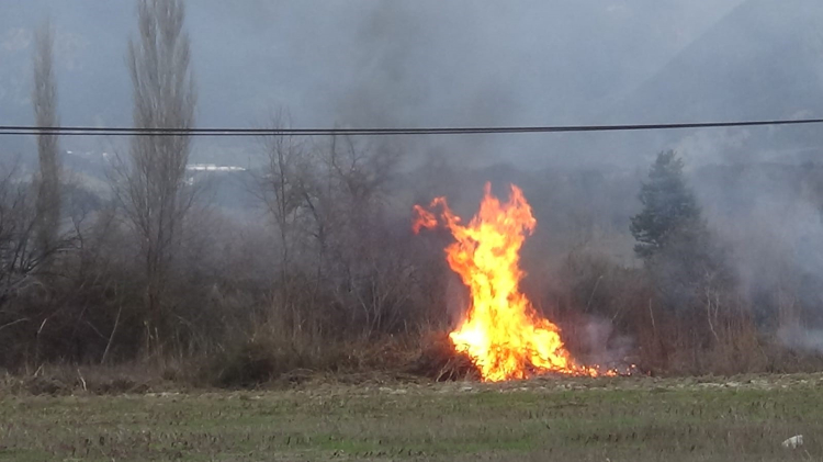 Bolu'da dere kenarındaki kuru otların alev almasıyla çıkan yangın, rüzgarın etkisiyle geniş bir alana yayıldı.