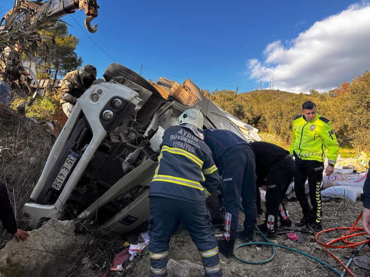Kaza, Kuşadası ilçesi Yeniköy yolu üzerinde meydana geldi. Edinilen bilgiye göre, Kuşadası yönüne giden 35 E 4158 plakalı yem yüklü tır, keskin virajda kontrolden çıkıp yol kenarındaki tarlaya uçtu. Kazayı görenler durumu 112 Acil Çağrı Merkezi'ne bildirdi. İhbar üzerine bölgeye polis, itfaiye ve sağlık ekipleri sevk edildi.