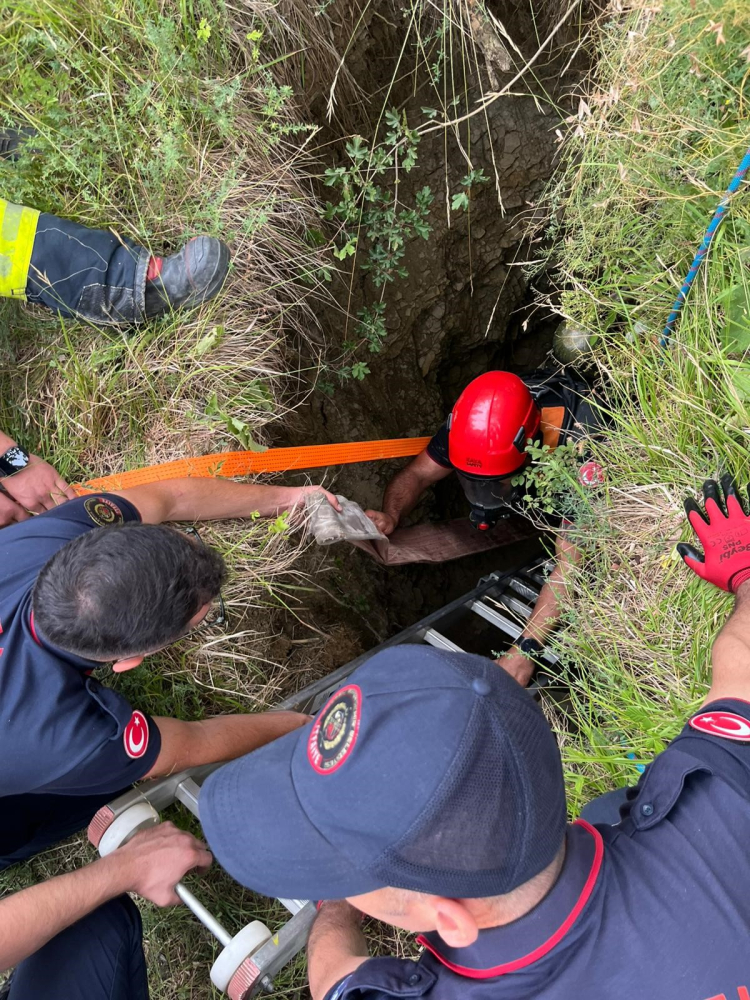 Cevdet Yılmaz'ın oğlu Abdullah Yıldız ise "Hayvan, definecilerin kazdığı 5 metrelik kuyuya düştü. İtfaiye erlerimizi çağırdık. Allah razı olsun, geldiler. Köylülerin de yardımıyla hayvanı sağ salim kuyudan çıkardık. Saatlerce uğraştık ama kurtardık" diye konuştu.