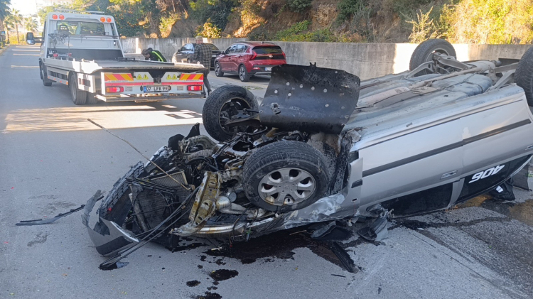 Manavgat’ta Virajı Alamayan Otomobil Refüjde Devrildi: 2 Yaralı