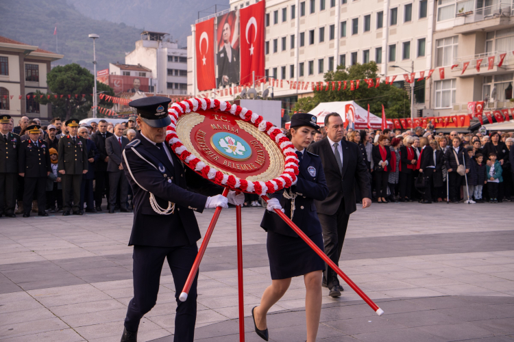 Türkiye Cumhuriyeti’nin kurucusu Gazi Mustafa Kemal Atatürk’ün ebediyete irtihalinin 87. yıl dönümü dolayısıyla Manisa’da tören düzenlendi. Cumhuriyet Meydanı Milli Egemenlik ve Atatürk Anıtına çelenk sunulmasıyla başlayan törende sirenlerin çalınmasıyla beraber kentte hayat adeta durdu. İki dakikalık saygı duruşu boyunca trafikteki araçlar durdu, sürücüler inerek saygı duruşuna katılırken sokakta yürüyen vatandaşlar ve öğrenciler de saygı duruşuna katıldı.
